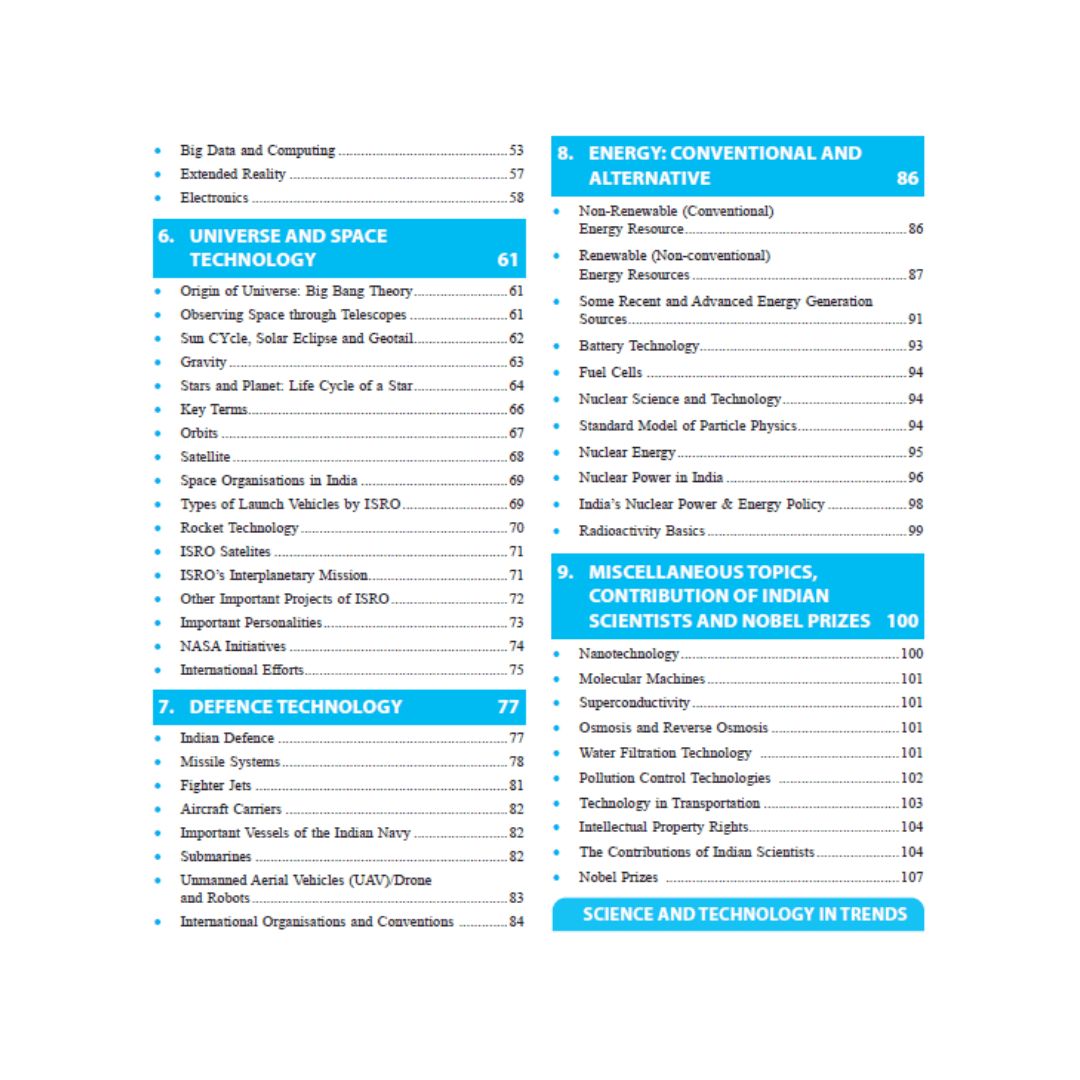 The content includes essential topics such as basic physics, chemistry, biology, space technology, biotechnology, information technology, defense technology, agriculture technology, and emerging technologies relevant to the UPSC Prelims syllabus. Complex scientific concepts are explained in simple language, helping aspirants build clarity and retain information effectively.