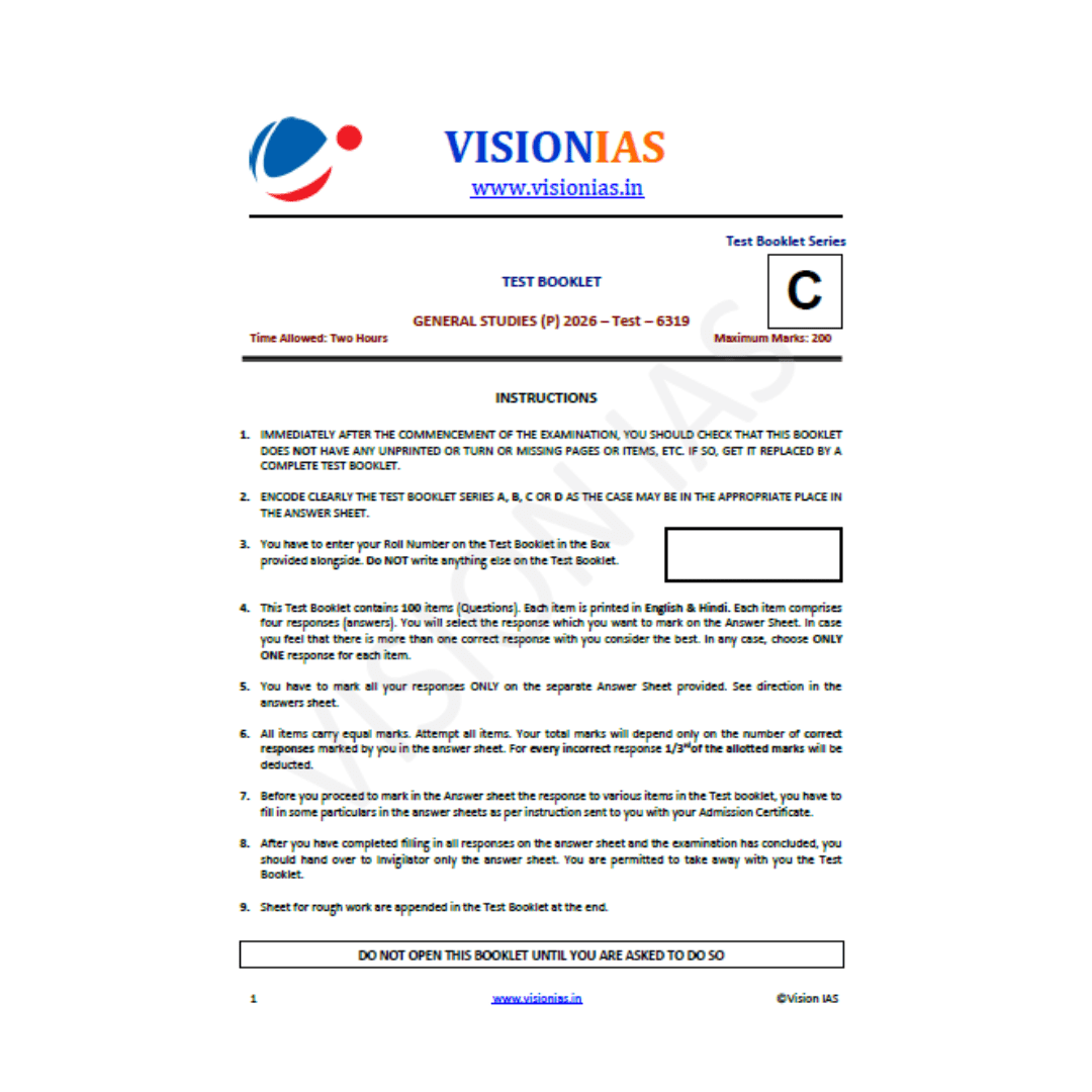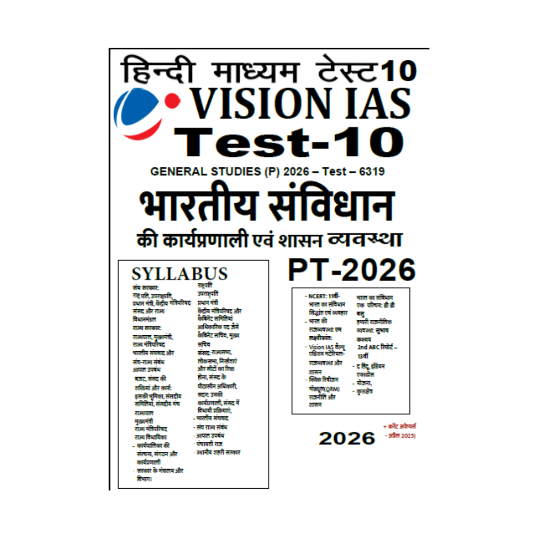 VISION IAS, भारतीय संविधान की कार्यप्रणाली एंव शासन व्यवस्था,हिन्दी माध्यम टेस्ट 10,2026 ,PT Test,