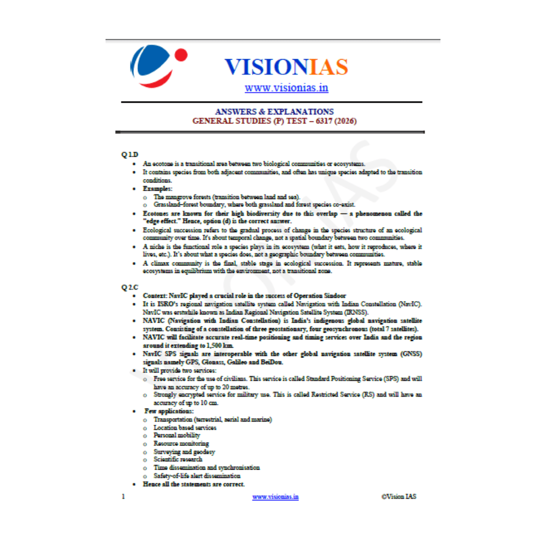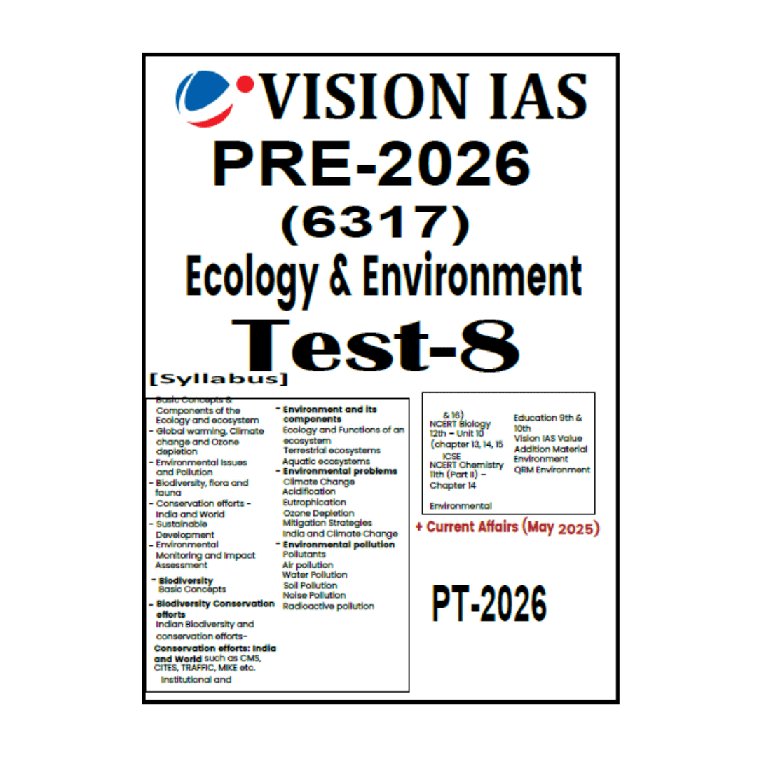 The Vision IAS Pre-2026 Ecology & Environment Test-8 is a highly relevant practice test designed specifically for UPSC CSE Prelims 2026 aspirants. This test focuses on the Ecology and Environment section, aligned with the latest UPSC syllabus and exam pattern. It covers both static environmental concepts and current affairs–based questions (up to May 2025), helping candidates assess their real exam readiness.